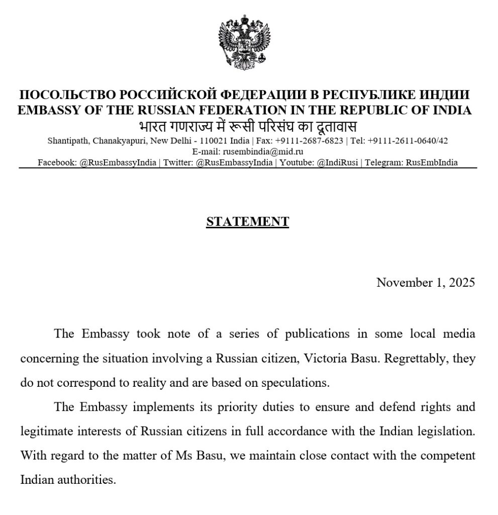 ਭਾਰਤ ਅਤੇ ਰੂਸ ਇਸ ਸਾਲ ਆਪਣੀ ਰਣਨੀਤਕ ਭਾਈਵਾਲੀ ਦੇ 25 ਸਾਲ ਮਨਾ ਰਹੇ ਹਨ, ਅਤੇ ਰਾਸ਼ਟਰਪਤੀ ਵਲਾਦੀਮੀਰ ਪੁਤਿਨ ਦਸੰਬਰ ਵਿੱਚ ਭਾਰਤ ਆਉਣ ਵਾਲੇ ਹਨ। ਇਹ ਪਰਿਵਾਰਕ ਵਿਵਾਦ ਕੂਟਨੀਤਕ ਸੰਵੇਦਨਸ਼ੀਲਤਾ ਦਾ ਮਾਮਲਾ ਬਣ ਗਿਆ ਹੈ। ਹਾਲਾਂਕਿ, ਰੂਸੀ ਦੂਤਾਵਾਸ ਨੇ ਹੁਣ ਆਪਣੀ ਚੁੱਪੀ ਤੋੜਦੇ ਹੋਏ ਕਿਹਾ ਹੈ ਕਿ ਬਹੁਤ ਸਾਰੀਆਂ ਮੀਡੀਆ ਰਿਪੋਰਟਾਂ ਅਟਕਲਾਂ ‘ਤੇ ਅਧਾਰਤ ਹਨ ਅਤੇ ਤੱਥਾਂ ਦੀ ਘਾਟ ਹੈ। ਦੂਤਾਵਾਸ ਦਾ ਕਹਿਣਾ ਹੈ ਕਿ ਉਹ ਭਾਰਤੀ ਕਾਨੂੰਨਾਂ ਦੇ ਤਹਿਤ ਆਪਣੇ ਨਾਗਰਿਕਾਂ ਦੇ ਅਧਿਕਾਰਾਂ ਦੀ ਰੱਖਿਆ ਕਰ ਰਿਹਾ ਹੈ ਅਤੇ ਇਸ ਮਾਮਲੇ ‘ਤੇ ਭਾਰਤੀ ਅਧਿਕਾਰੀਆਂ ਨਾਲ ਨੇੜਿਓਂ ਸੰਪਰਕ ਵਿੱਚ ਹੈ।